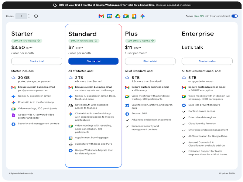 This image below is a comparison of Google Workspace subscriptions as of February 6, 2026.